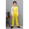 Ensemble, le gilet avec boutons gris, le nœud papillon et le pantalon, jaune, créent une tenue d'une élégance indéniable, parfaite pour un garçon d'honneur qui souhaite se démarquer avec style lors d'un mariage. Cette combinaison de couleurs et de détails soigneusement choisis fait de cet ensemble une option mémorable et idéale pour toute occasion spéciale.