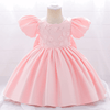 Laissez votre petite princesse rayonner avec notre somptueuse tenue baptismale fille rose, une pièce digne du règne de la royauté et de la délicatesse florale. Dans un rose clair enchanteur, cette robe captivera les cœurs avec son élégance intemporelle. Les courtes manches bouffantes rappellent l'opulence des robes de la noblesse, conférant à votre petite princesse une aura de splendeur et de majesté.