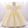 Le corsage à manches courtes bouffantes et col rond offre une silhouette adorable et intemporelle. Le long jupon crée une silhouette élégante et gracieuse, tandis que le dos orné d'un nœud papillon apporte un brin de charme original supplémentaire. Cette robe est parfaite pour une cérémonie de baptême, offrant à votre bébé fille un look à la fois doux et mémorable.